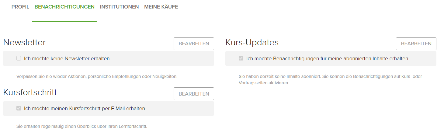 Der einfachste Weg, dies zu tun, ist über die Abmeldelinks, die in den Mails enthalten sind. Sie können dabei selbst wählen, ob Sie sowohl Newsletter als auch Lernfortschrittserinnerung abbestellen wollen oder nur eines von beidem. Klicken Sie dazu einfach ganz unten in der Mail, die Sie abbestellen wollen, auf den Abbestellen-Link.
